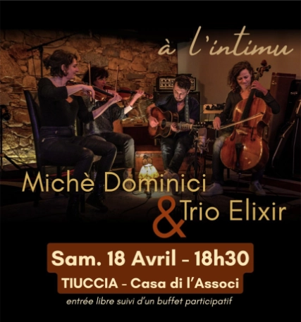 Michè Dominici et le Trio Elixir en concert le samedi 18 avril à 18H30 à Tiuccia, Casa di l’Associ.