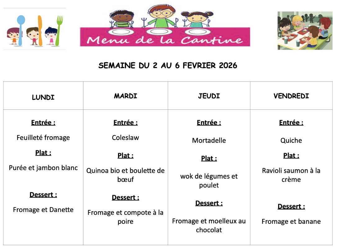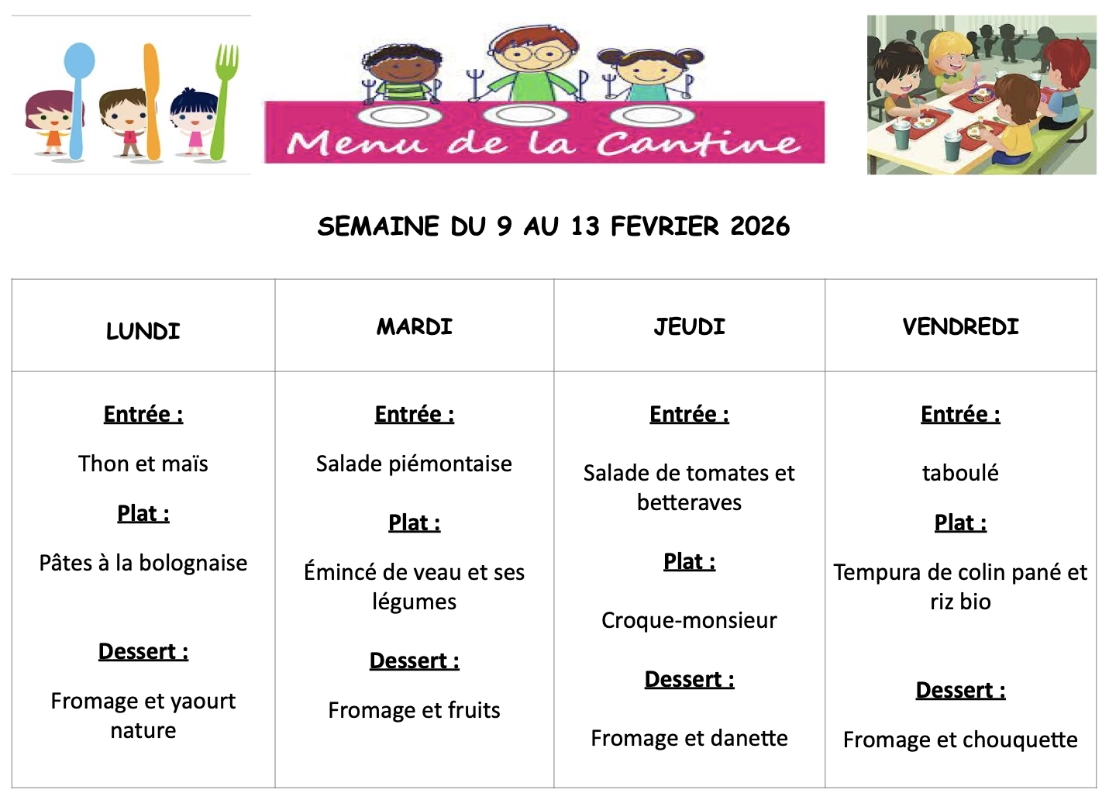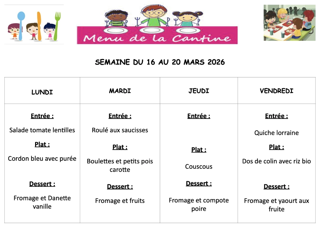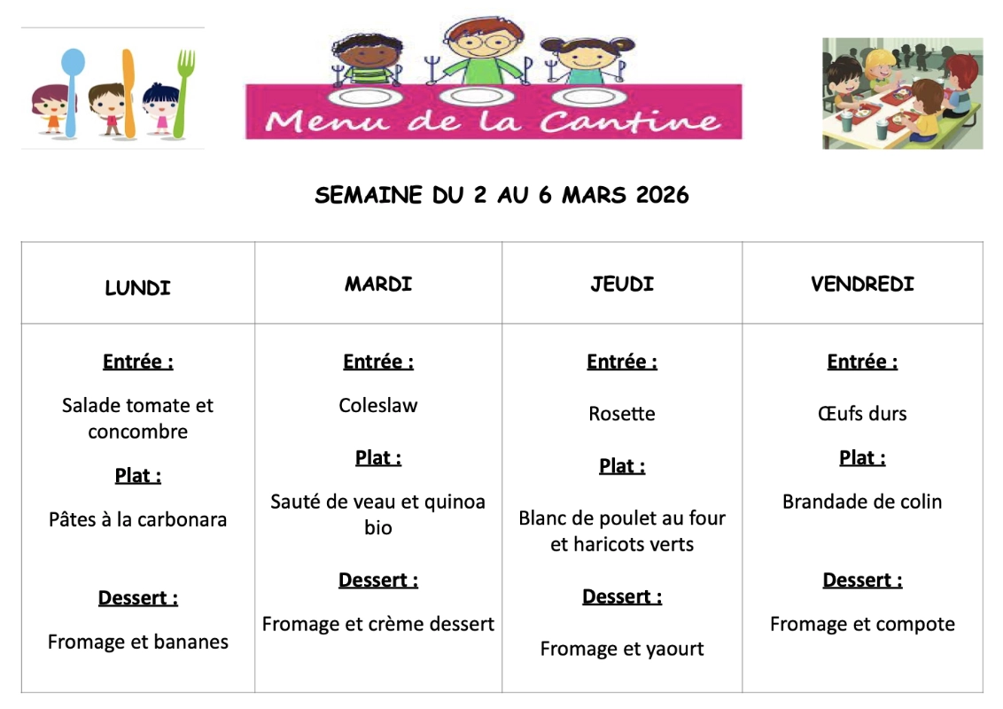 CANTINE : MENUS DE LA SEMAINECliquer sur le(s) document(s) ci-dessous !