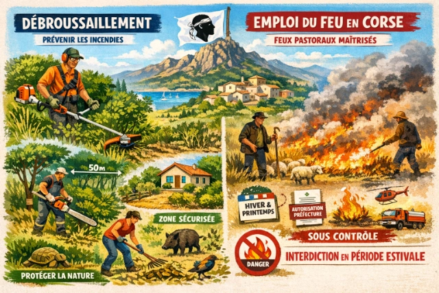 Pour connaitre les détails sur les obligations concernant le débroussaillement et la règlementation sur l’emploi du feu en Corse, deux documents sont à votre disposition.