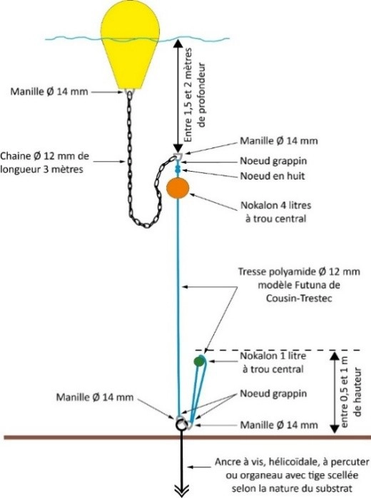 Paradoxalement, les bouées de balisage, installées dans la bande des 300 mètres pour la sécurité de la navigation, des usages et des loisirs nautiques, peuvent faire des ravages. Beaucoup reposent en effet sur des corps morts en béton ou en fer, lourds et abrasifs, accrochés par des chaînes. Ces dispositifs, lorsqu’ils ne sont pas écoconçus, causent des impacts directs sur les herbiers (en les écrasant) et des dommages prolongés par le ragage des chaînes, qui lacèrent le tapis végétal.